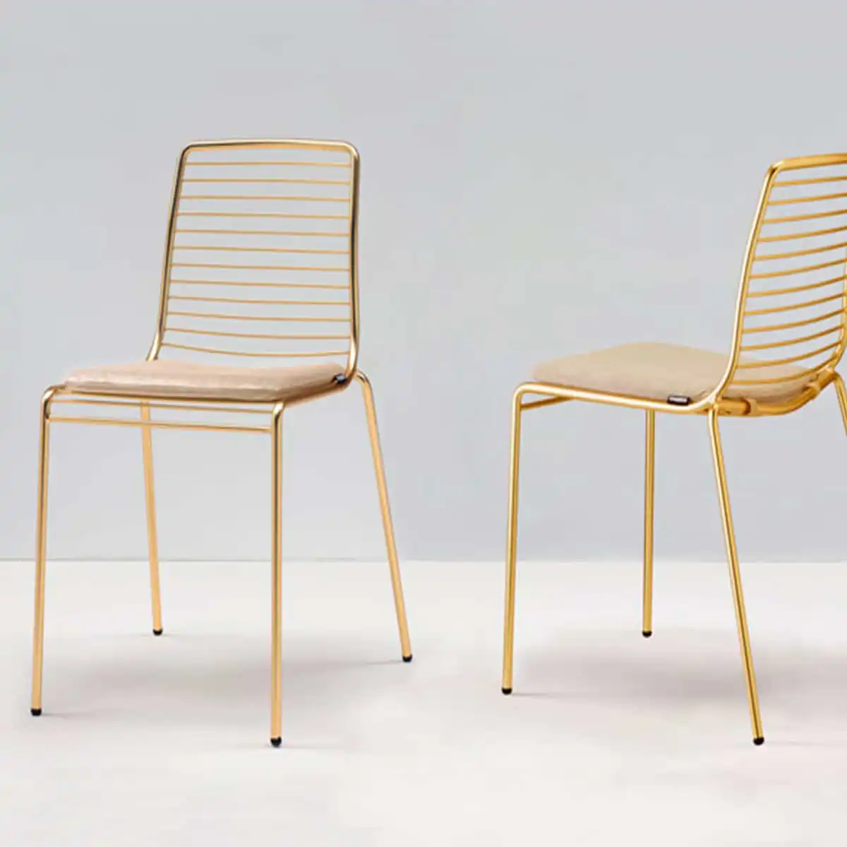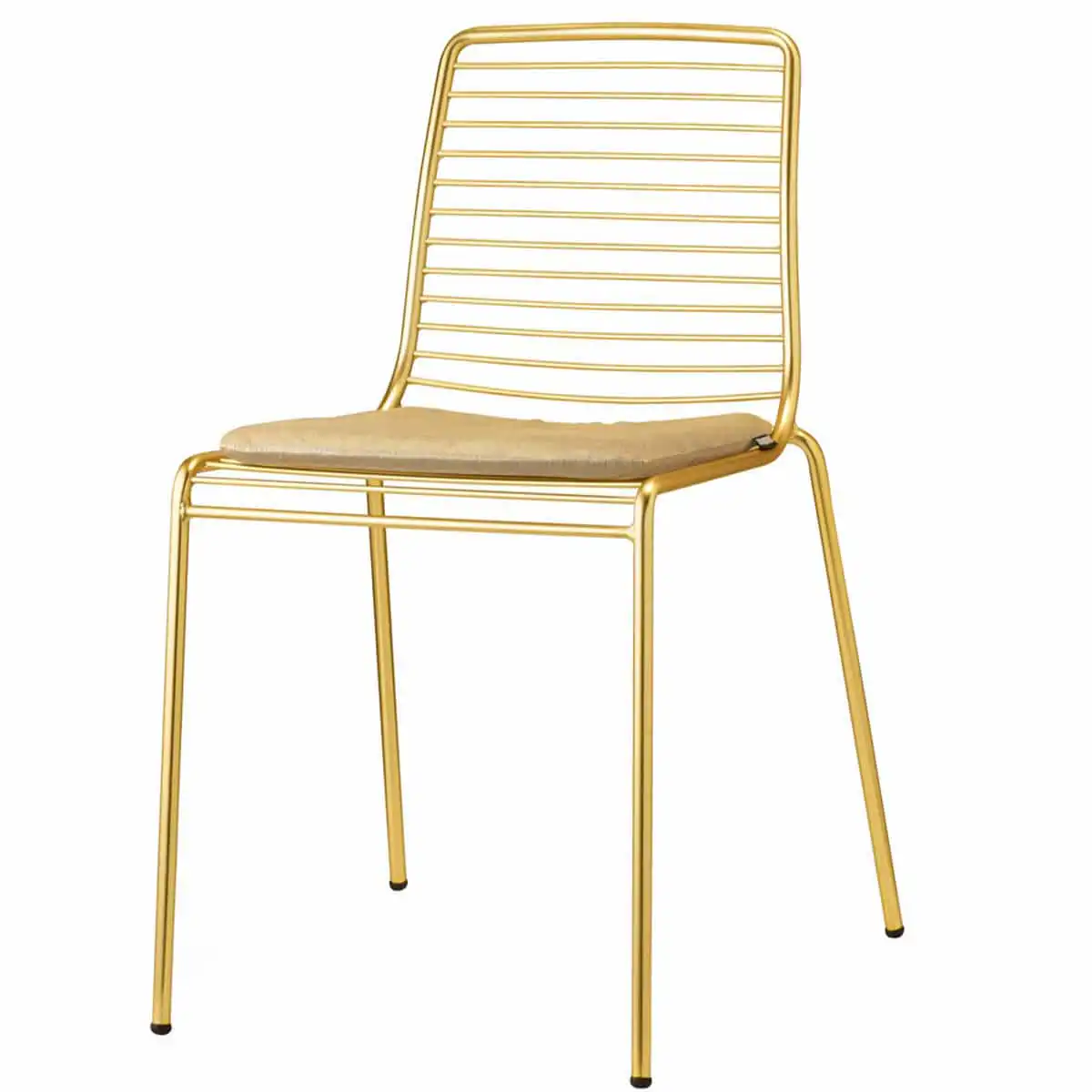 La Chaise Summer OS séduit par sa touche glamour affirmée : une structure en acier zingué filaire avec finition laiton doré verni, associée à un coussin gris tourterelle qui apporte douceur et confort. Avec ses proportions étudiées (H 80 / 47 × L 52 × P 57,5 cm) et son poids de 7 kg, elle offre une élégance notable sans lourdeur visuelle.
